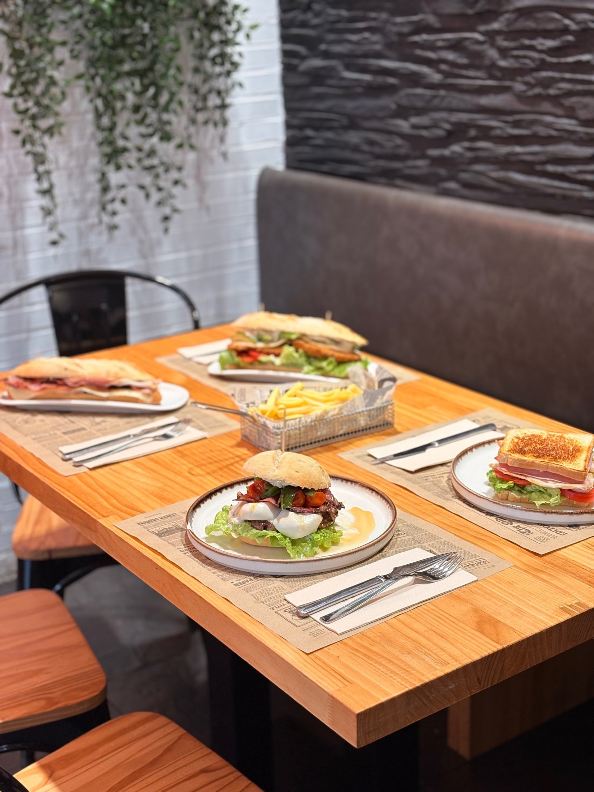 RÚSTICA.- Nuestra burger de vacuno de 180 gr en pan rústico con cebolla caramelizada, beicon, queso cheddar fundido, extra de queso crema, tomate, lechuga, huevo a la plancha y salsa especial de la casa. 13,00 €